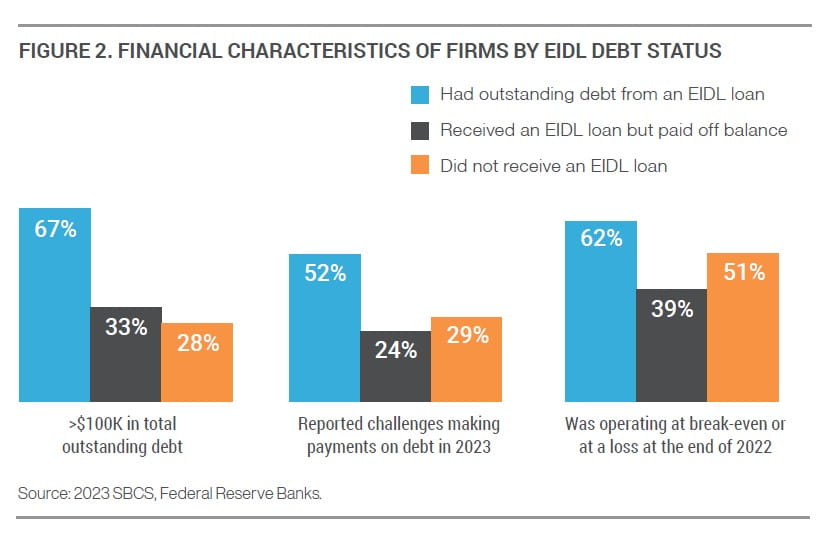 Small businesses that have yet to pay off COVID-19 Economic Injury Disaster Loans are in worse shape than other small businesses, according to a new Small Business Credit Survey report from the 12 Federal Reserve Banks.